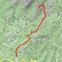 Continuing on, you will encounter the historic Mas de Puigventós ruins and informative markers providing insight into the area's heritage. Along the route, be sure to stop by the Font del Mateu spring at 1.37 km for a refreshing drink of water. As you approach the endpoint, the Puig de la Creueta peak offers a rewarding panoramic view of the surroundings.