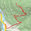 Further along the route, you'll come across the Ross-Hütte shelter at 1.14 kilometers, providing a perfect spot for a rest. Continuing on, you'll encounter the Kammerloch waterfall at 3.59 kilometers and another waterfall at 3.67 kilometers. Take in the beautiful sights and sounds of nature as you hike through the lush surroundings.