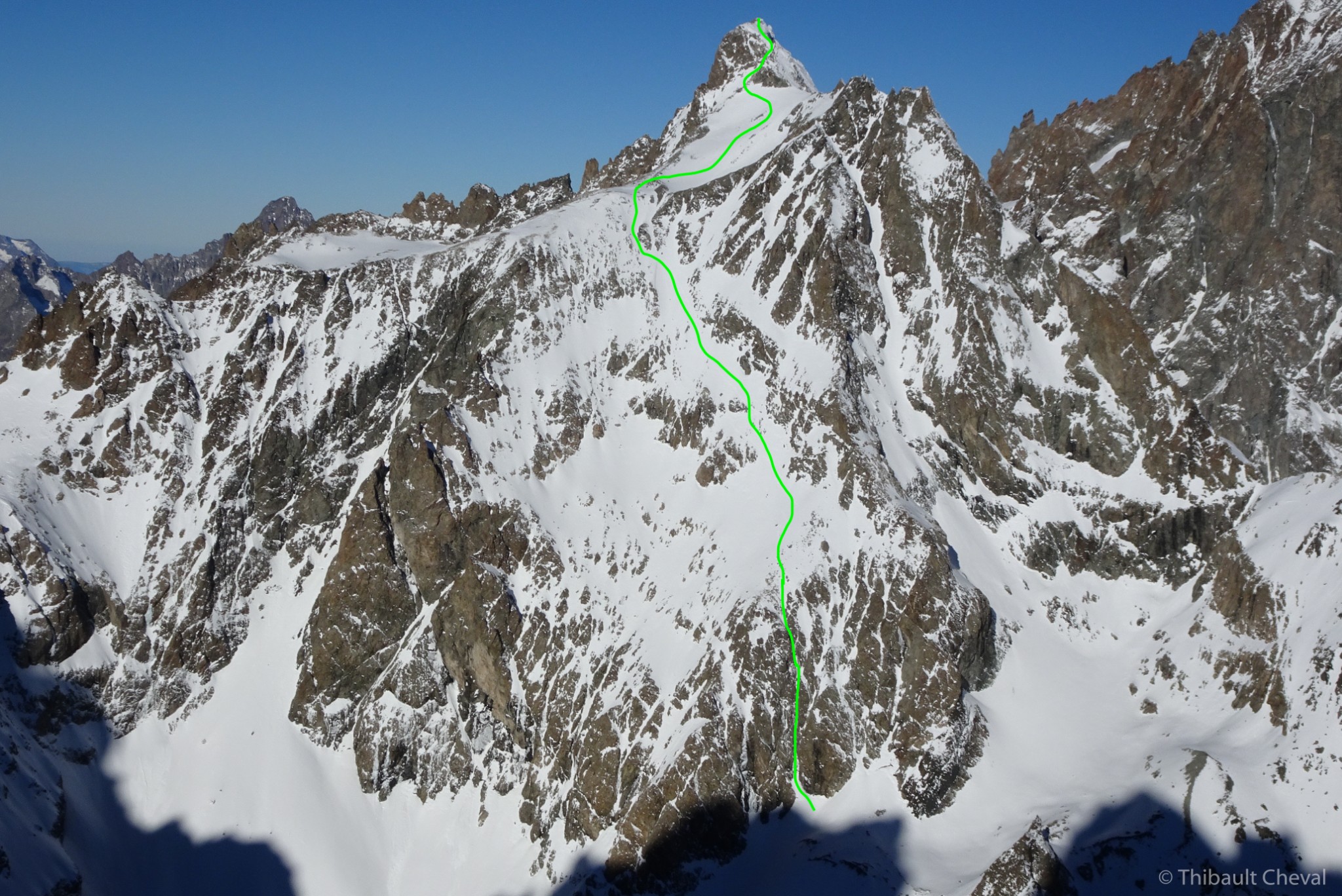 Puis remonter au plus facile la face S pour retrouver la voie normale vers 3570 m.