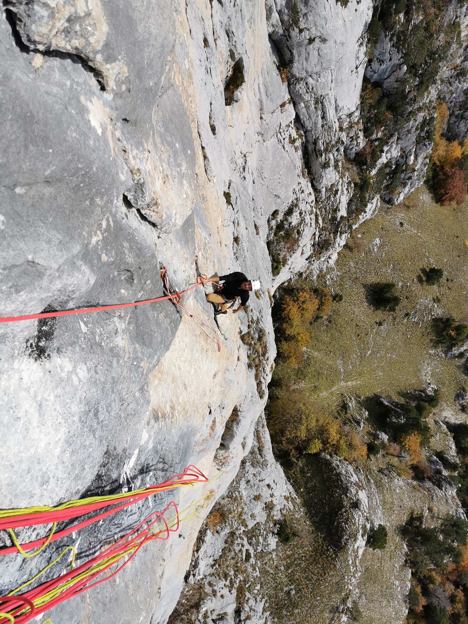 La voie est celle qui est la plus à gauche, départ au niveau de la grotte (plaquettes dorées).