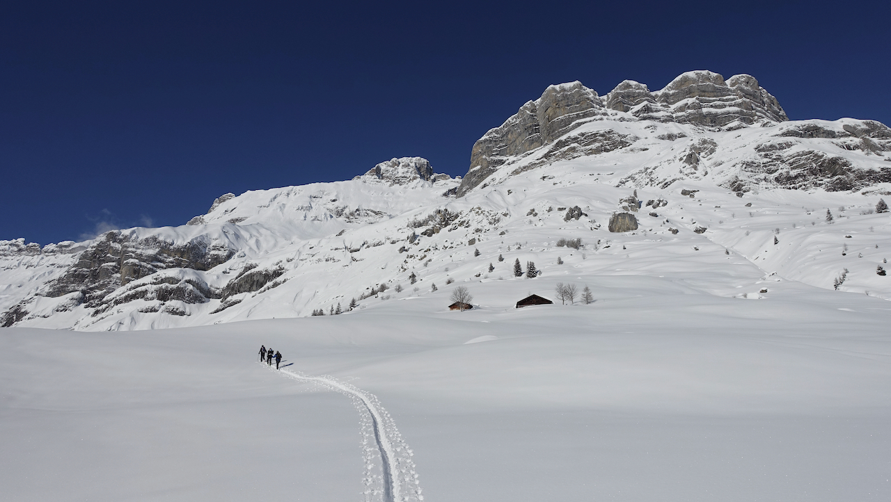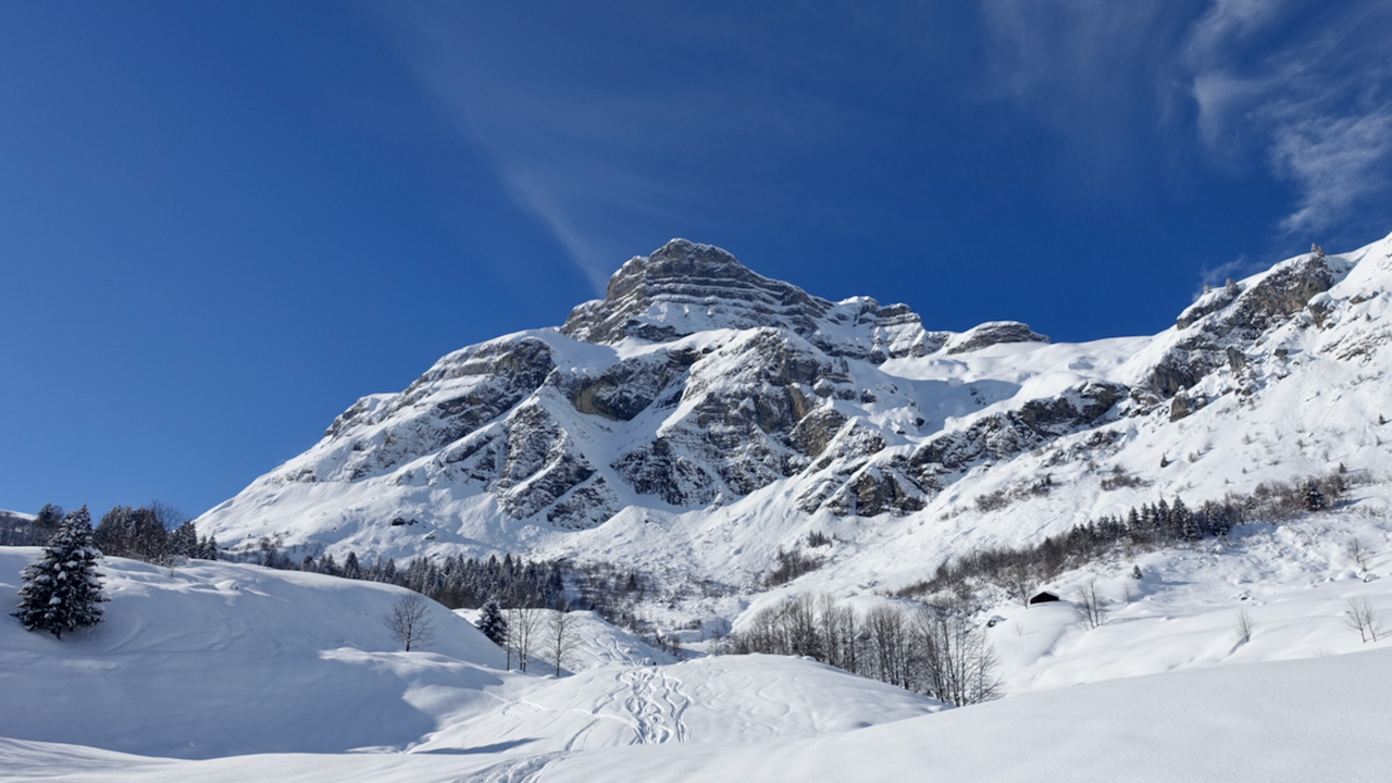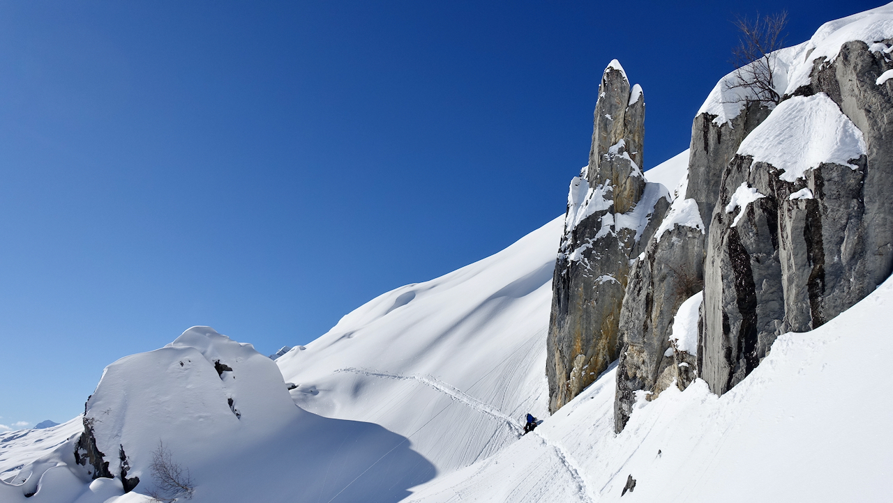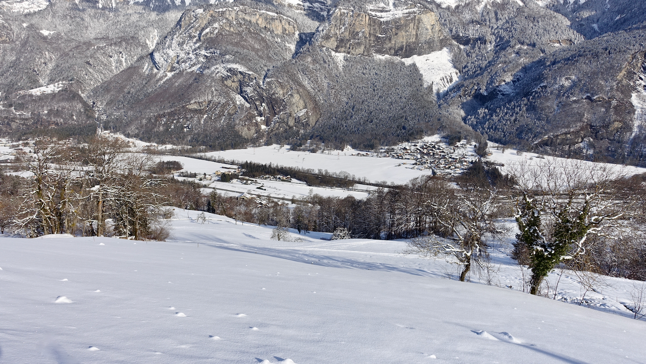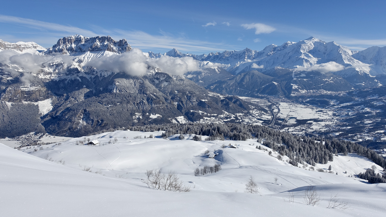 Une belle traversée au pied des Quatre Têtes avec une descente rare jusqu'au Ruthieux à 670 m juste au-dessus de Sallanches.