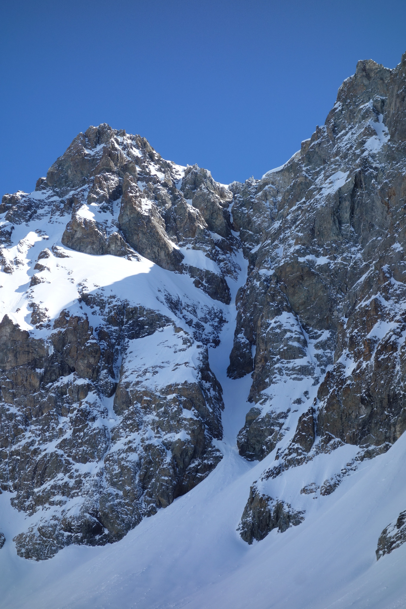 Un joli couloir encaissé caché au fond du vallon de Bonnepierre, ne débouchant pas, mais offrant des vues sublimes sur la face N de la Barre des Écrins, le versant NW du Dôme de Neige...