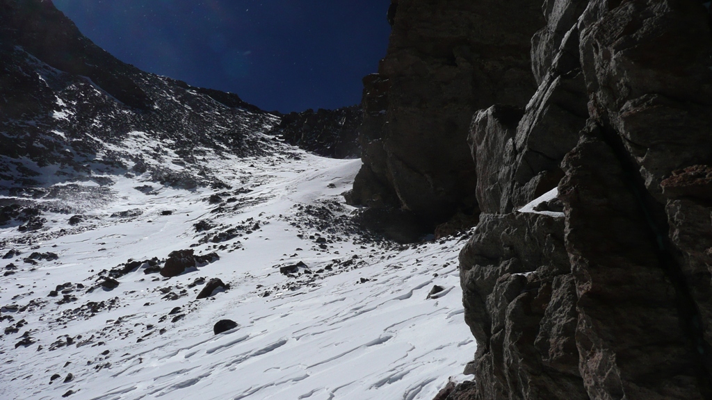 Après le passage des ruines du refuge Independencia, on commence la "Grande traversée" qui permet de rejoindre la Canaleta par une ascension progressive. C'est généralement vers Independencia que l'on chausse les crampons en début de saison.