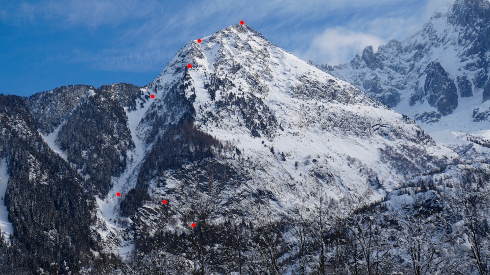 Départ depuis le télécabine de Bochard aux Grands Montets, descendre la Pendant rive gauche, remonter un petit couloir en neige avant l'Aiguille à Bochard, suivre l'Arête effilée jusqu'au sommet. Du sommet descendre encore à pied jusqu'à la grande pente de neige. Skier la pente et rentrer dans le couloir à gauche évident au bout de cette pente. Après 350 mètres prendre à droite pour rejoindre un petit couloir qui permet de rejoindre le Couloir du Chapeau. Descendre le Couloir du Chapeau jusqu'au Lavencher.