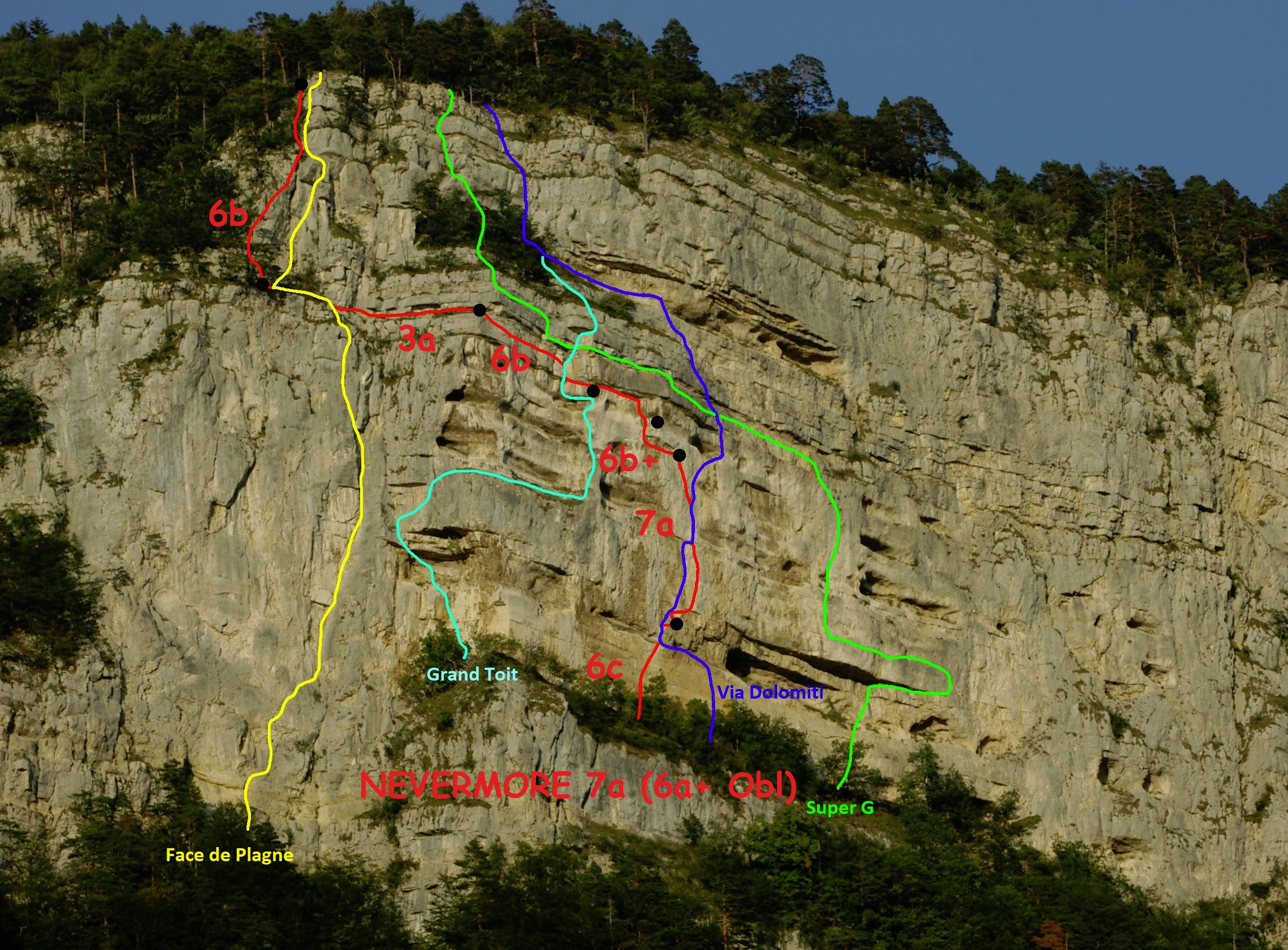 NEVERMORE 7a (6a+ obl) 6lg 150 m