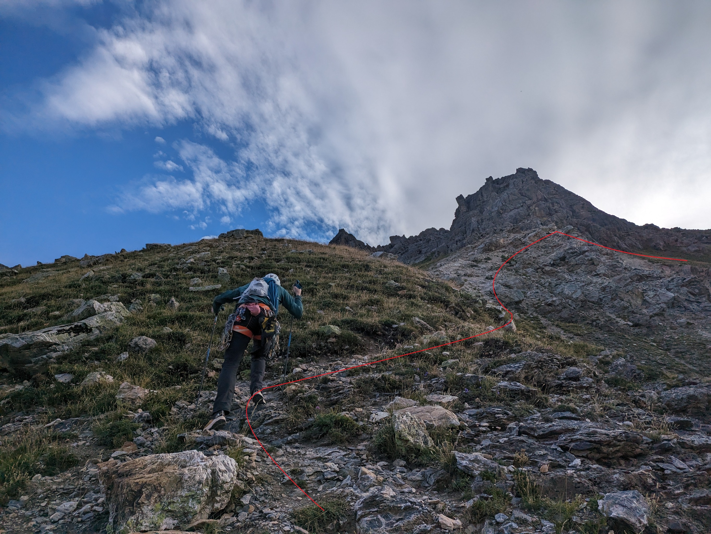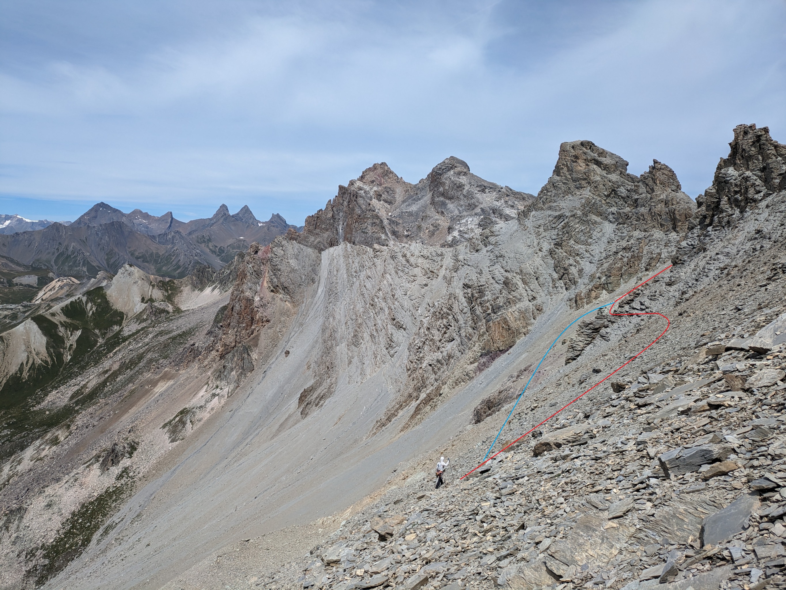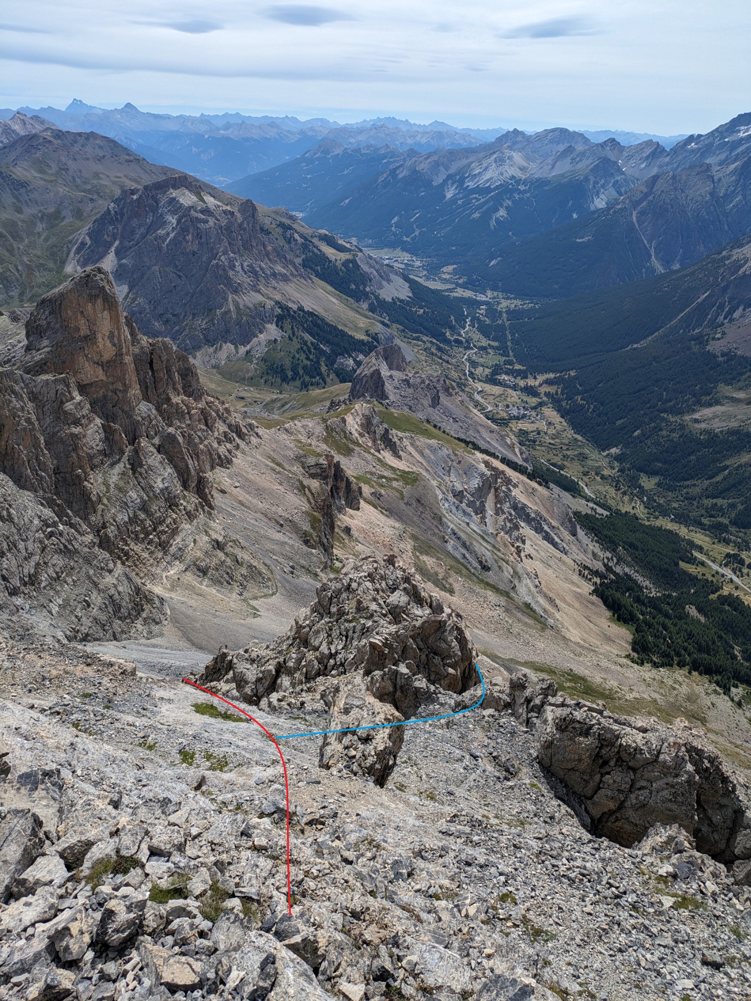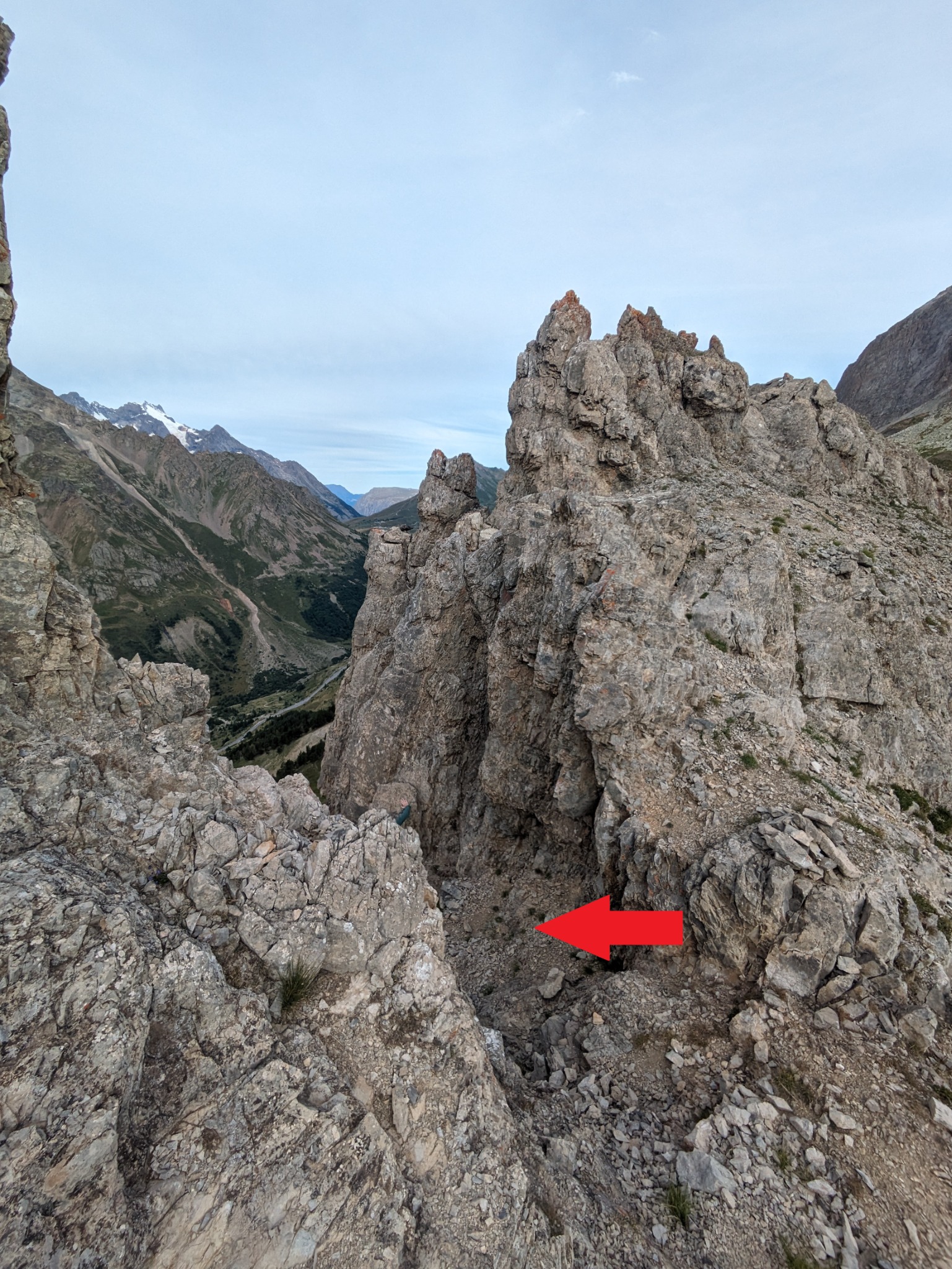 Prendre la deuxième, et désescalader au mieux (le GPX est peut-être faux ici, parcours par la première brèche ?)