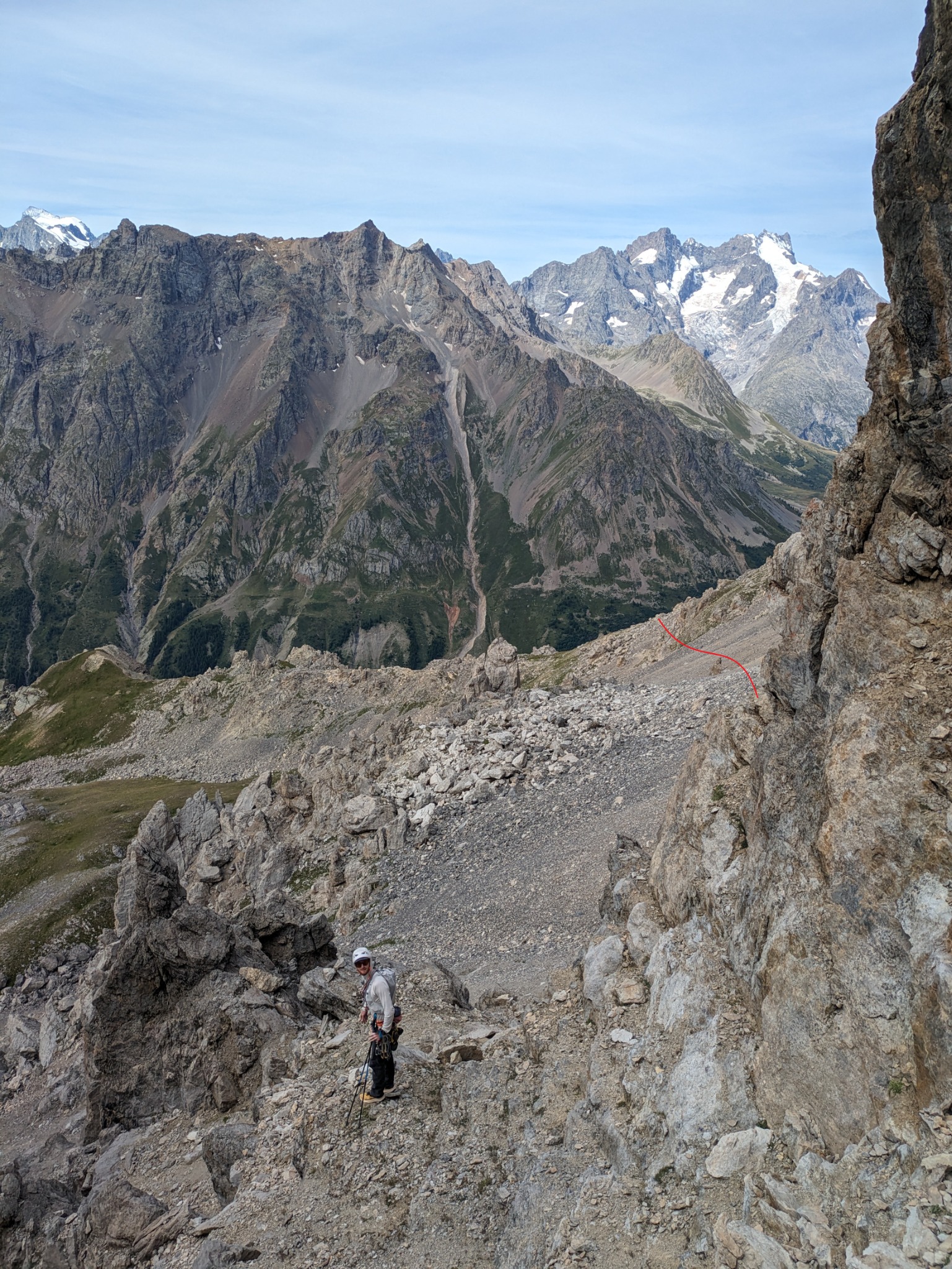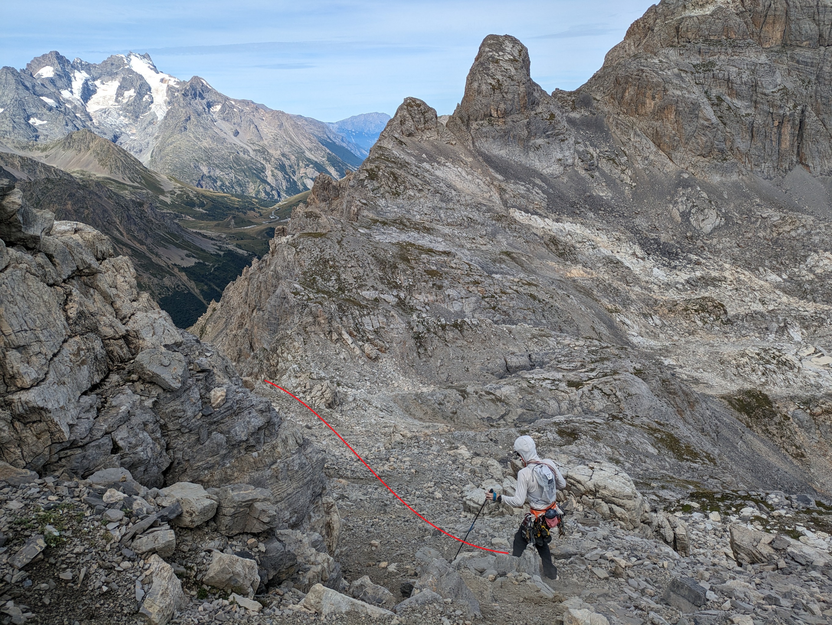 Cette déambulation minérale et géologique, propice à la rêverie, demande de ne pas trop s'endormir quand même : 41 longueurs, 1200m d'escalade, 1400m de transition, avant d'espérer faire votre propre Grande Galipette sur le Grand Galibier, point culminant du massif.