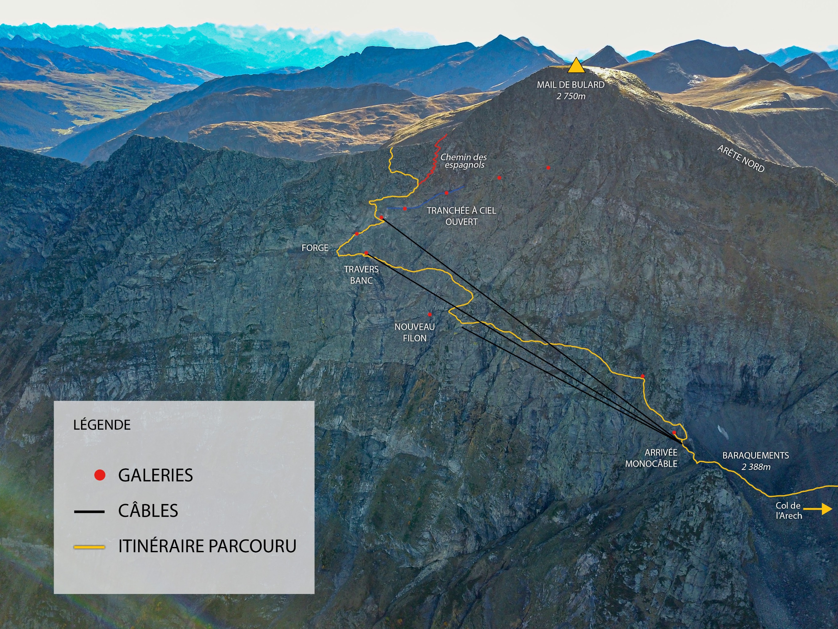 Ascension de la Mail de Bulard par le sentier historique qu’empruntaient les mineurs qui ont travaillé dans les mines de 1900 à 1919. C'est un itinéraire dangereux et exposé qui s'adresse à des montagnards confirmés et équipés. Il permet de voir les baraquements des mineurs, des installations d'exploitation (câbles, remontées mécaniques, bâtiments en ruines) et certaines galeries. Il est également demandé de ne toucher à rien de ce patrimoine industriel pour des raisons de conservation.