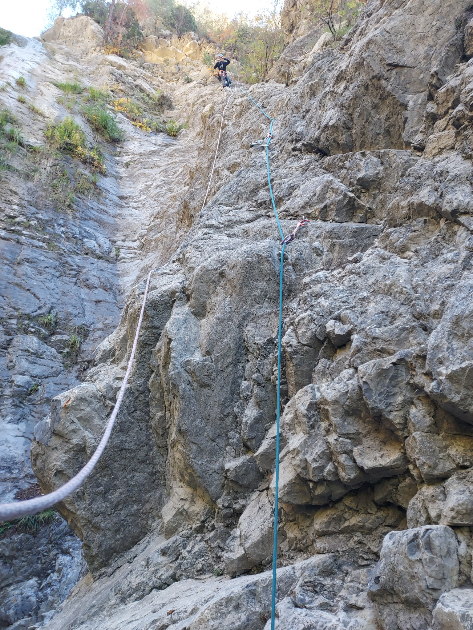 - les 2 autres rappels sont végétaux, possibilité pour ces 2 rappels de mouliner le 1er qui installe le rappel au fur et à mesure de la descente.