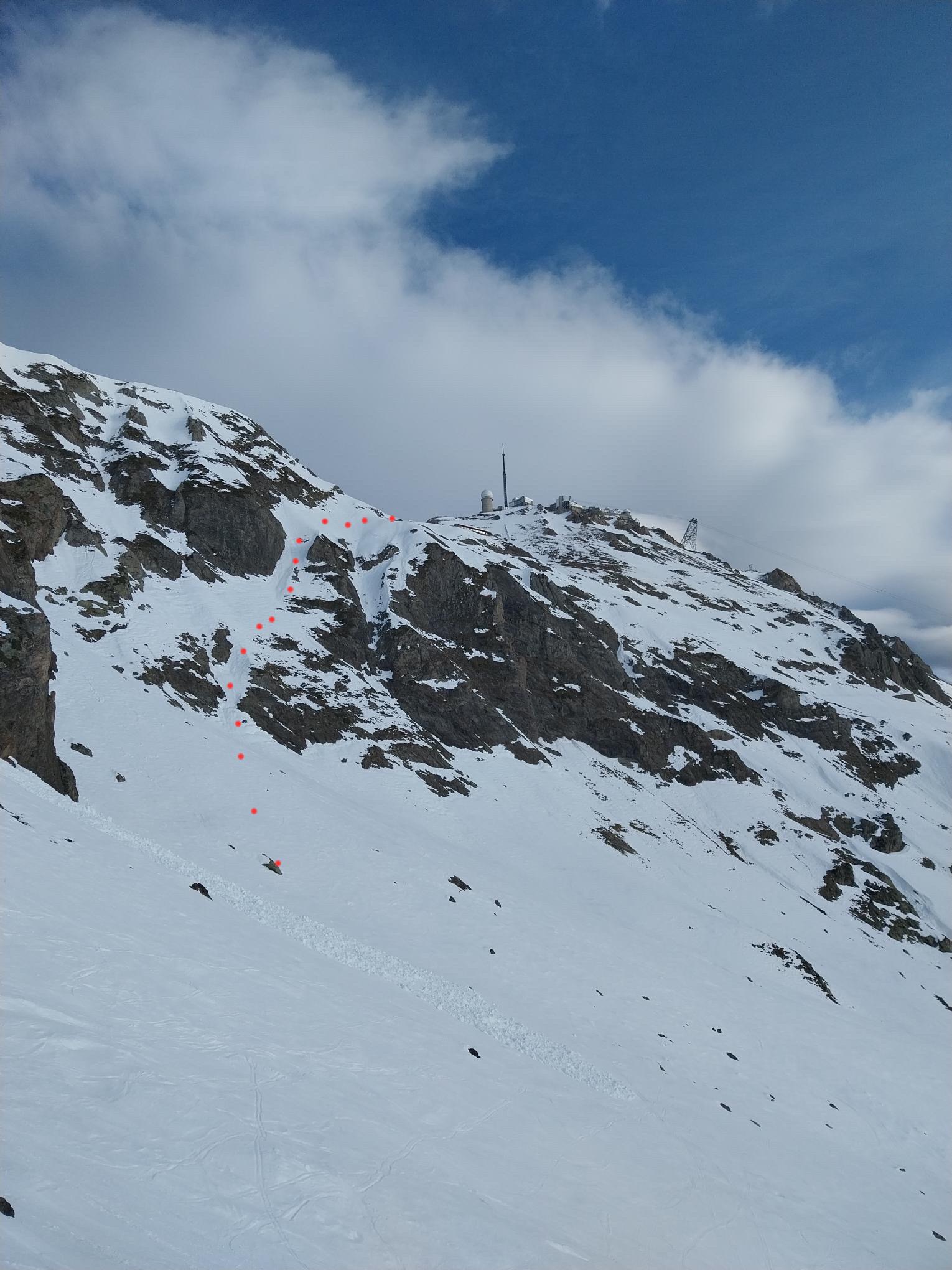 Départ du pic du midi. Direction l’hôtellerie de lacquet, de la on prend la diagonale engagée au dessus de la barre rocheuse qui surplombe le lac d’oncet. Cette diagonale mène tout droit sur la partie finale du dièdre d’Oncet. Expo ++ passage 50