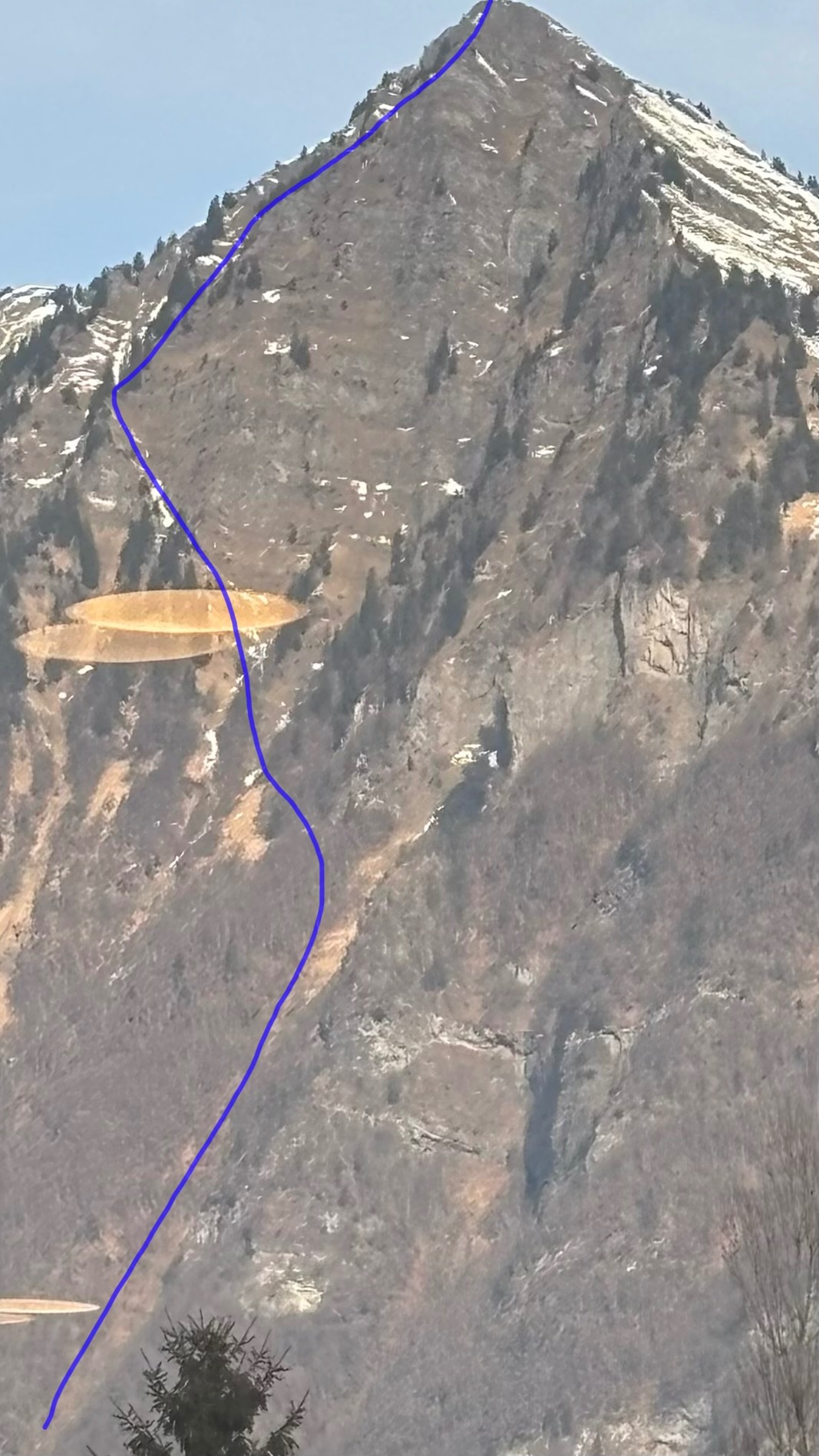 Grosse végétation en bas ! Attention à l’enneigement au N ou sur les crêtes pour les voies de retour.