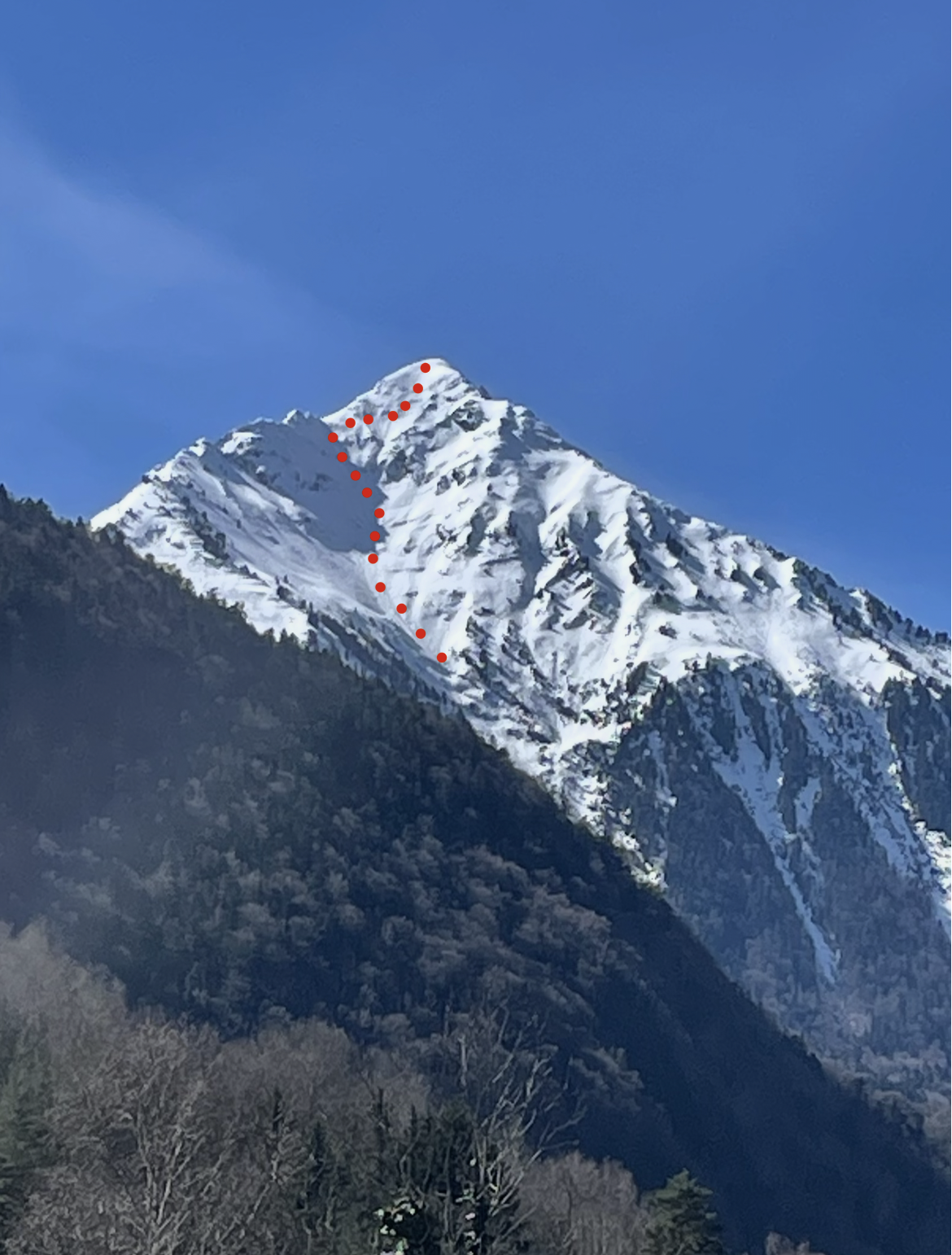 De là, remonter le couloir évident à gauche de la face (45/50°) pour sortir sur la crête et la suivre jusqu'au sommet.