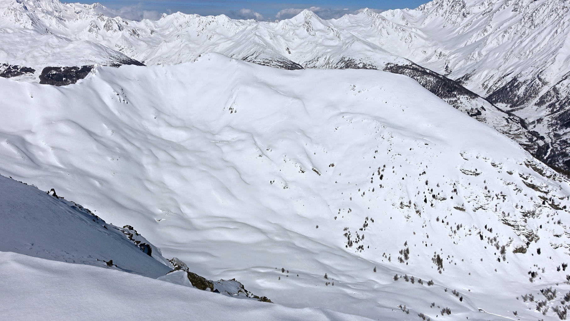 Le haut est vaste il y a de la place pour choisir son itinéraire ensuite en fin de vallon, par l'itinéraire de montée jusqu'à Chez les Blanc retour éventuel au village d'Echevennoz par le ru (itinéraire no103)