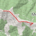 À la sortie de la forêt vers 1800 m repérer sur la droite (SW) un couloir dégagé et assez raide aboutissant à un petit col facilement reconnaissable, un bâtiment en ruine, ex gare de téléphérique pour les mines, marque en effet son emplacement à 2023 m. Ce couloir est assez raide sur sa partie finale environ 35°.