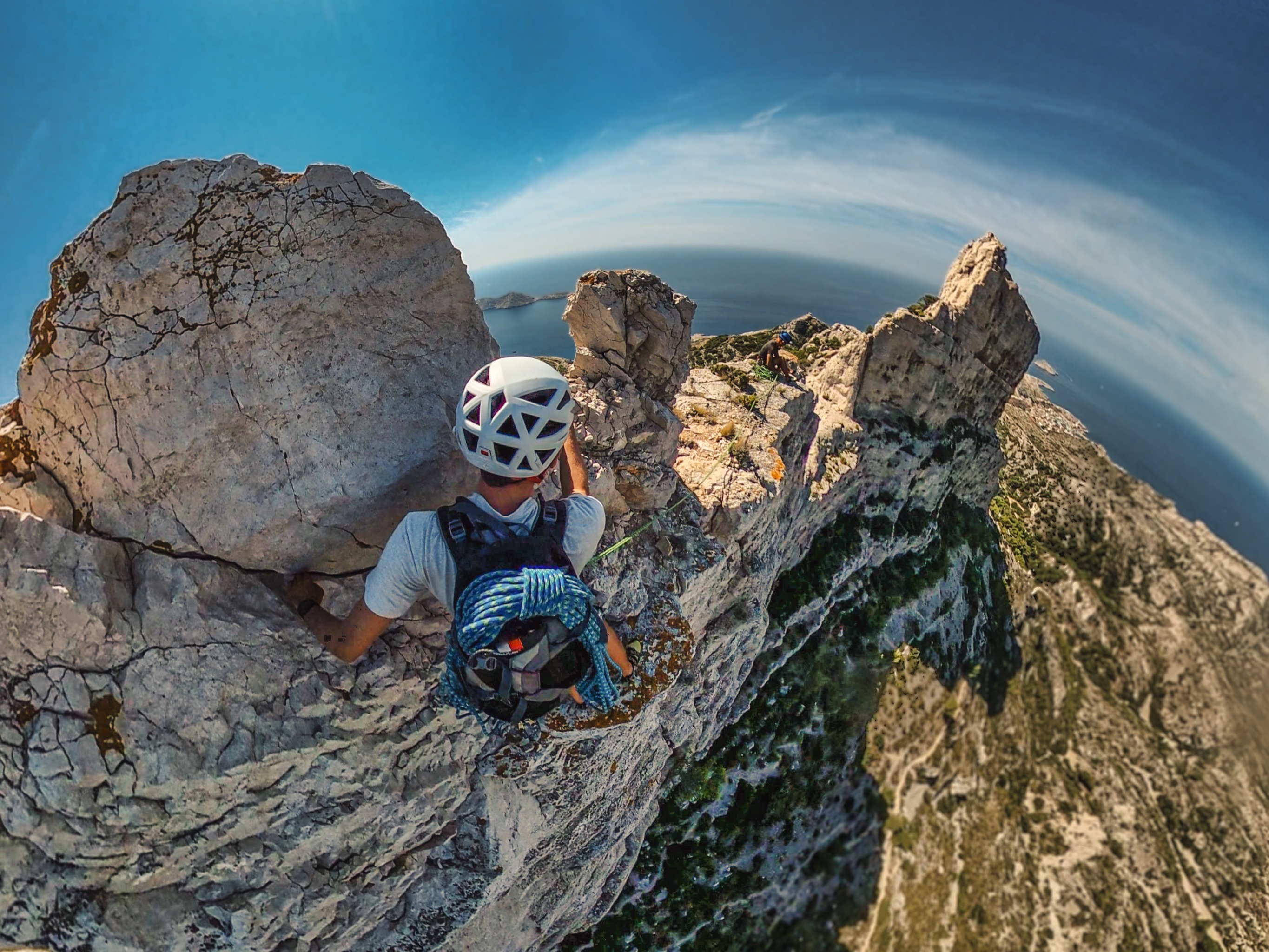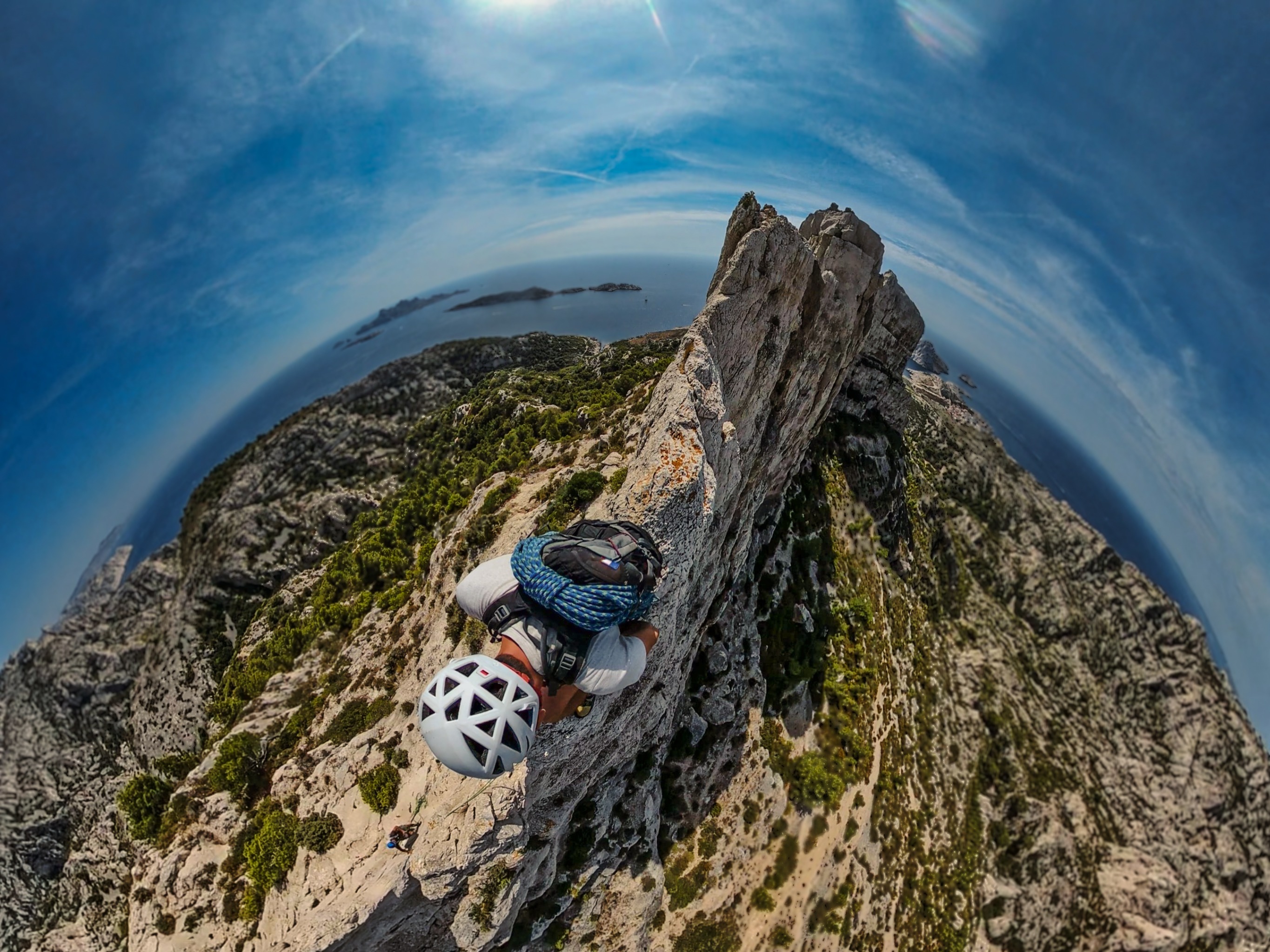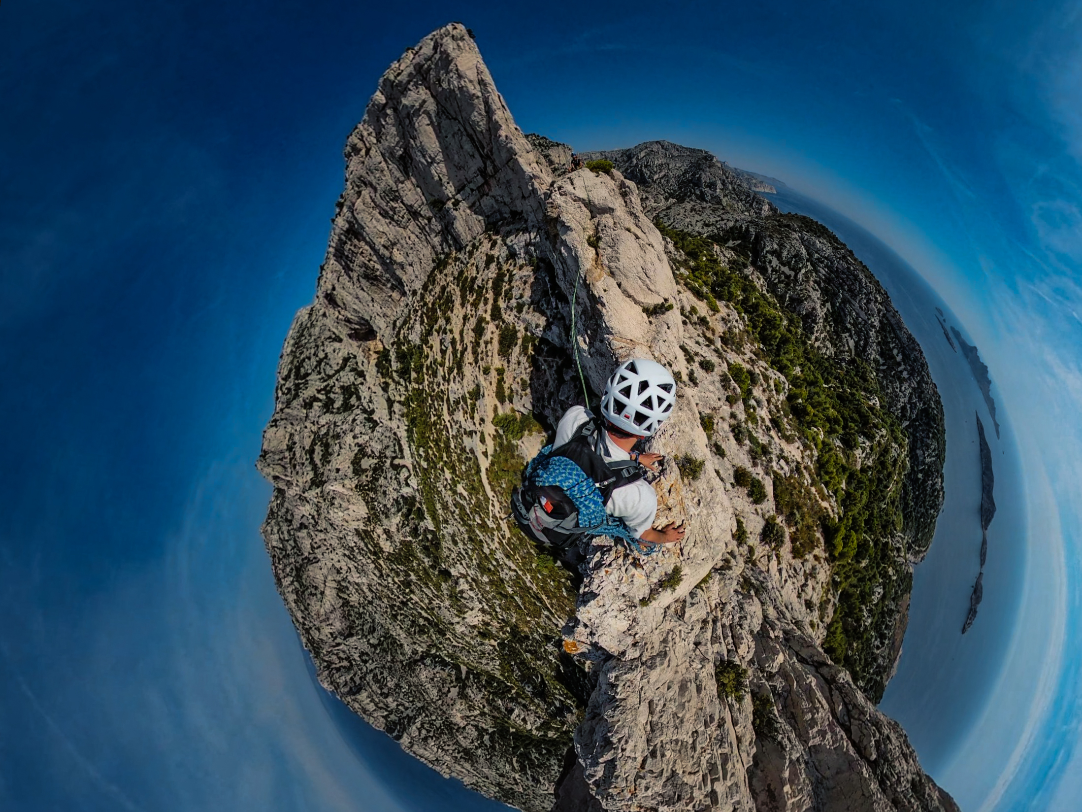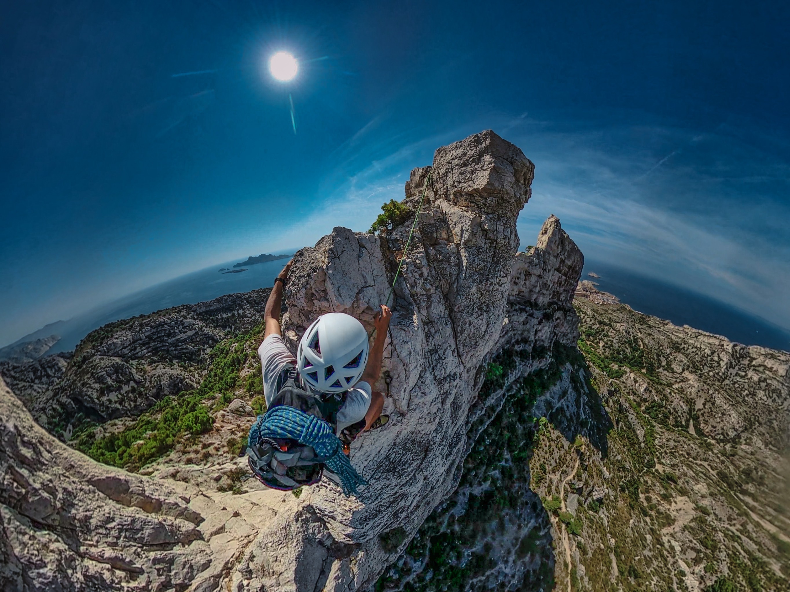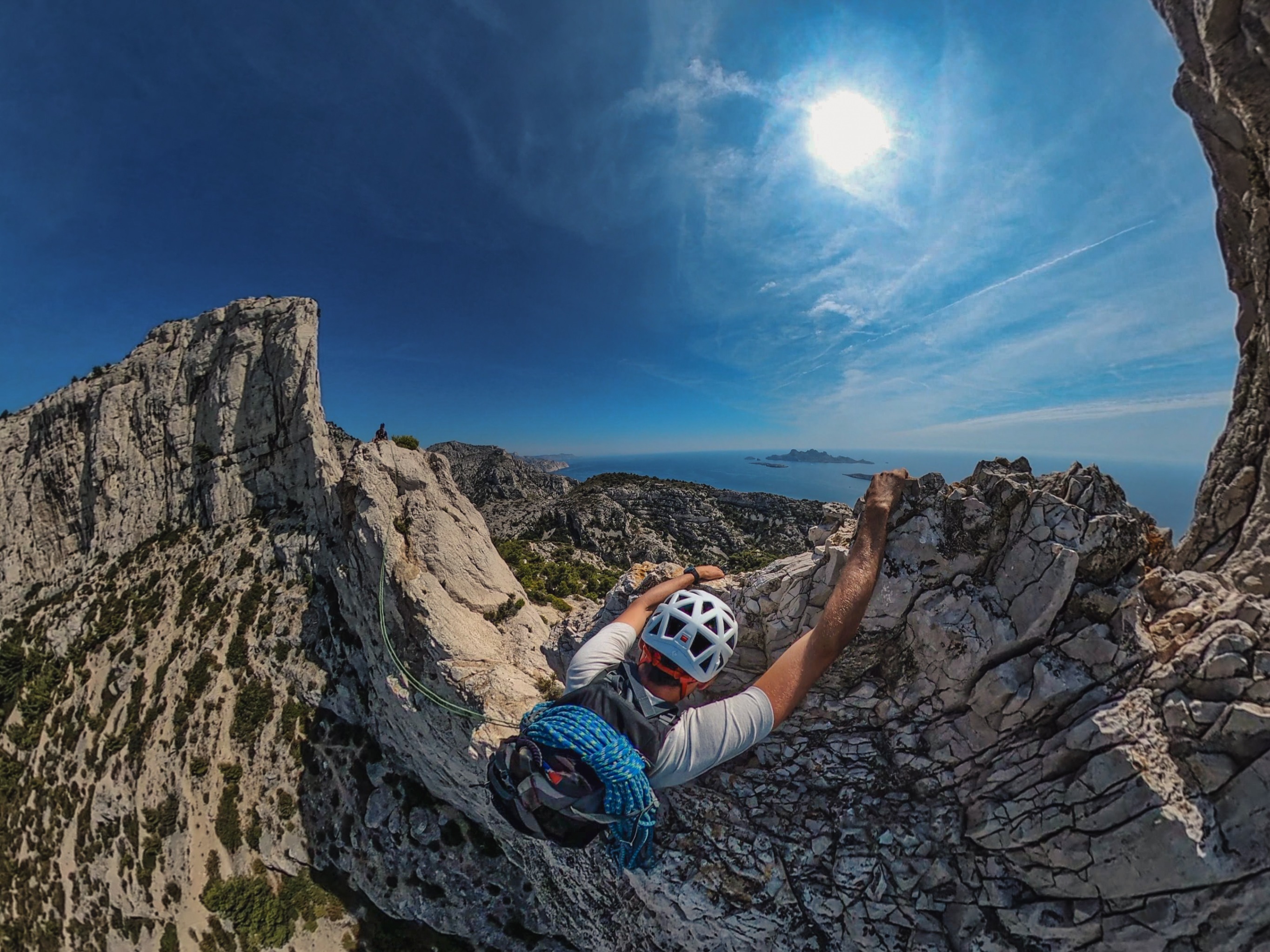 L# | 4b | 25 m | Désescalader l’arête en clippant les scellements avec un passage en 4b au départ, puis la suite plus facile jusqu'à la base du rocher des Goudes
