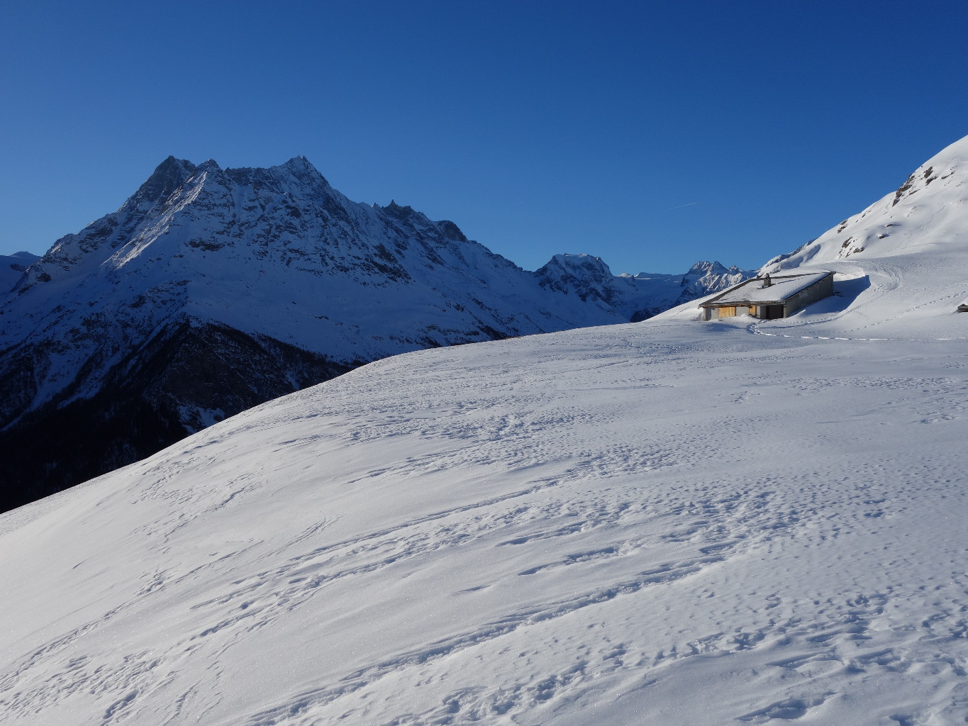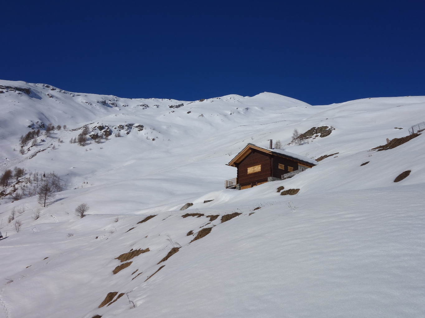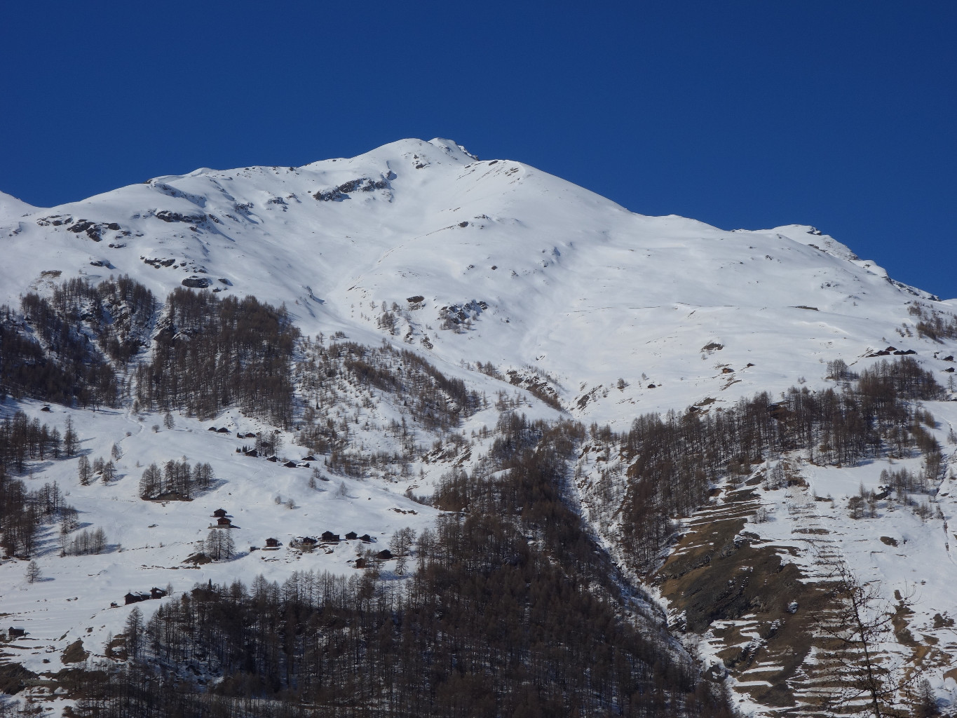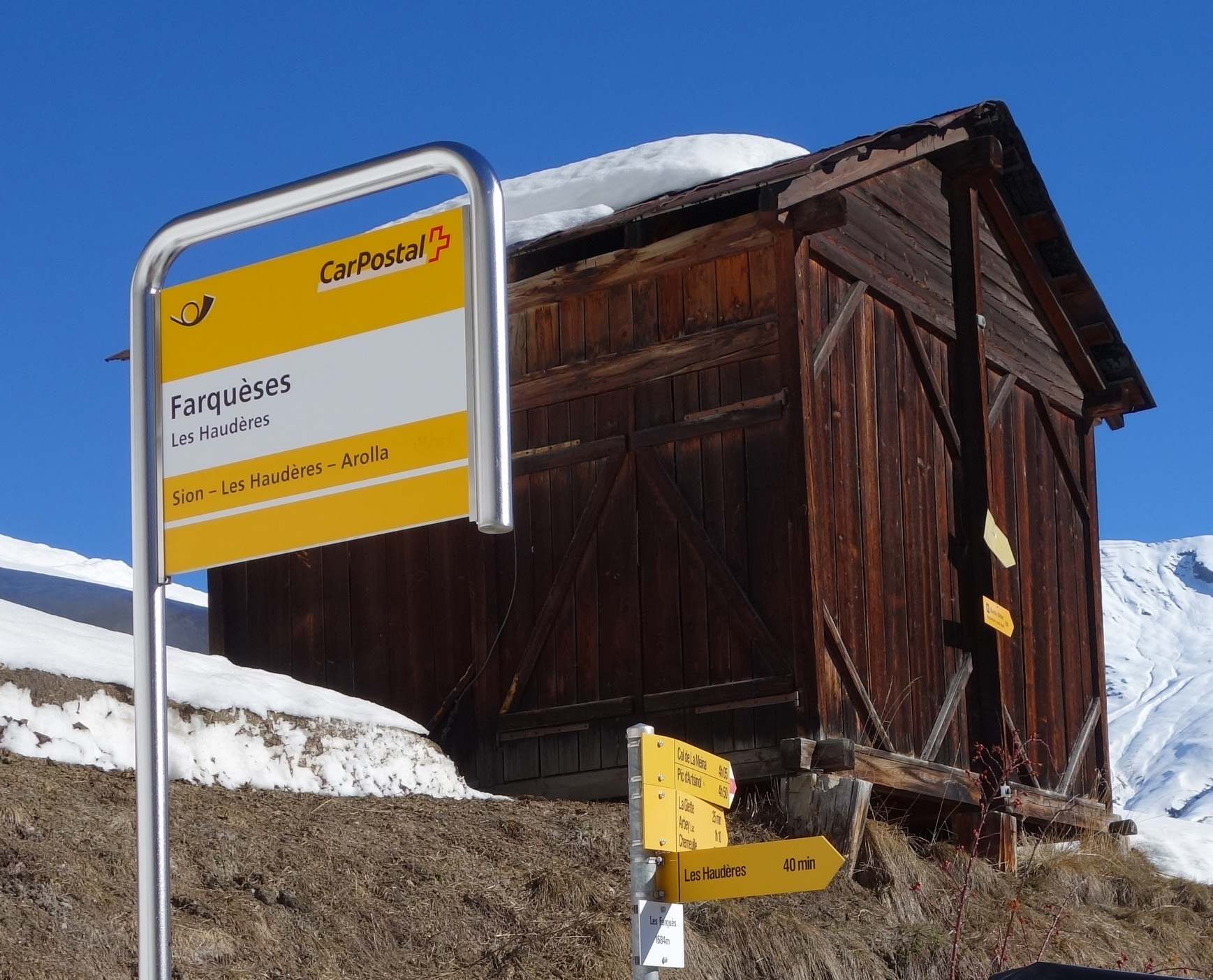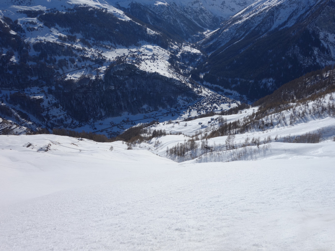 * Ou alors (mais avec 2 voitures) : laisser une voiture à la bifurcation pour les Mayens de Grandpra (env. 1640), pour pouvoir redescendre par là. *Dénivelé descente: 1285 m.*