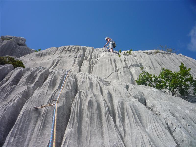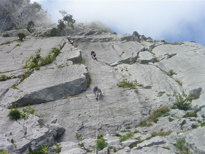 - Les points des relais sont bons mais reliés entre eux uniquement avec de vielles cordelettes.