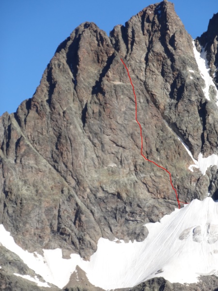 Intéressante quand la neige est présente dans la voie normale. Cette voie exposée SW ne conserve pas la neige. Cette descente est rapide, mais il s'agit d'une **PD+ Oisans très peu parcourue, il faut être à l'aise dans le terrain à chamois sans trop d'assurance**.