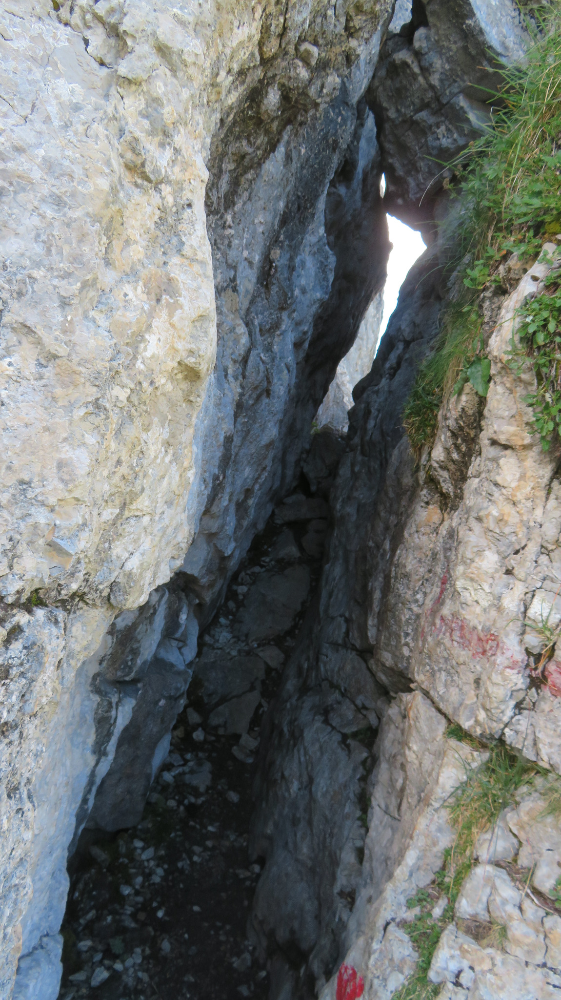 De Barme, atteignable l'été en bus de Champery, suivre la route puis à Luibronne 1680, tourner à gauche (plein S). Le chemin se raidit, puis part en traversée à droite à 1800 m, assez horizontale, mais avec de l'exposition. Il revient vers la gauche, avec une succession de passages raides chainés, ou de traversées horizontale (terrain souvent gras). Sous le Pas de la Bide, quelques rochers plus imposants, mais avec une bonne indication du passage. Rentrer dans le Pas de la Bide 1855 m, qui est une faille de 40 cm de largeur entre des rochers obliques. Il est aussi possible de contourner la faille (T5 herbeux, forte exposition), ou de passer au-dessus (petit pas de grimpe), pour pimenter le passage.