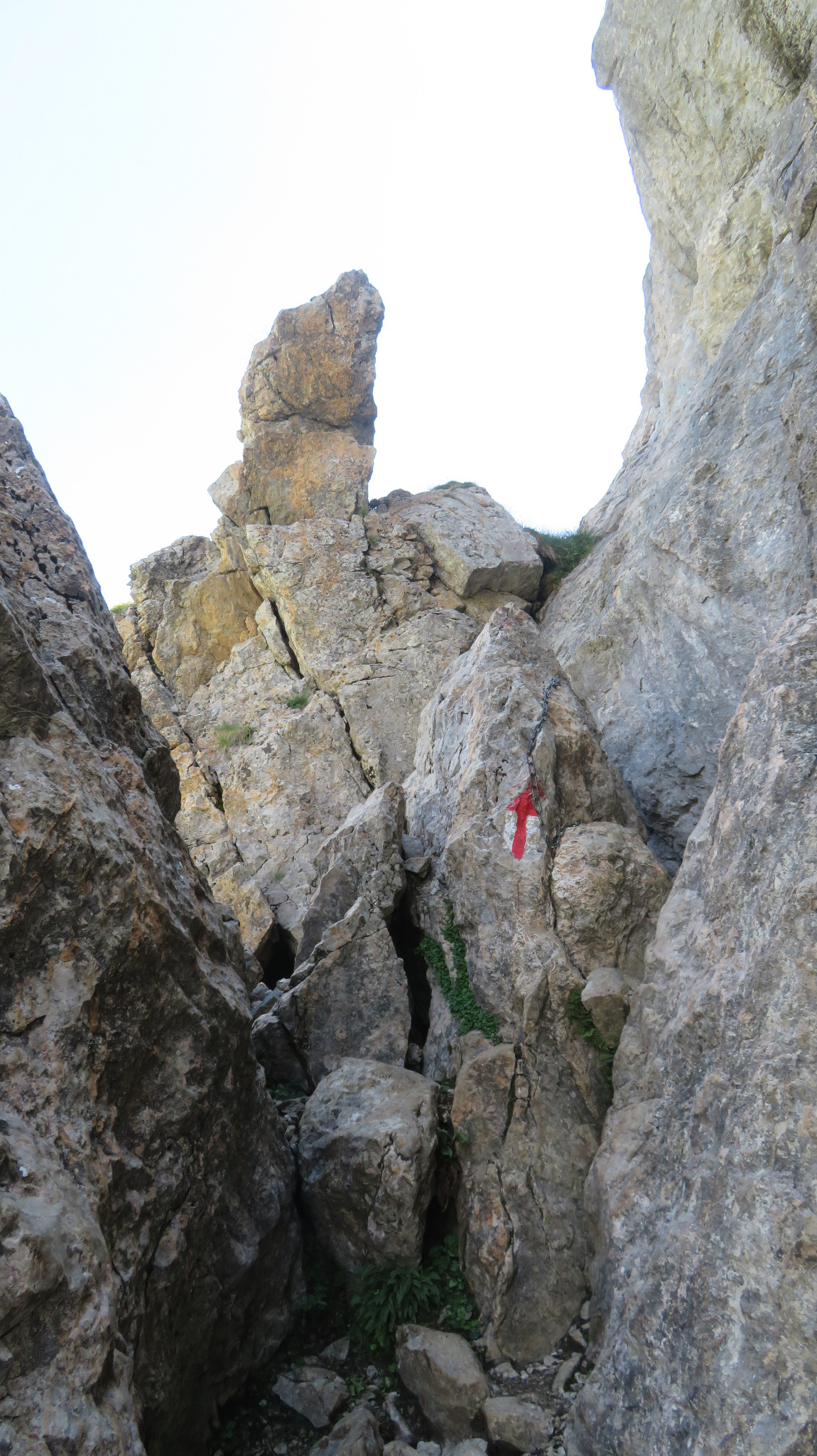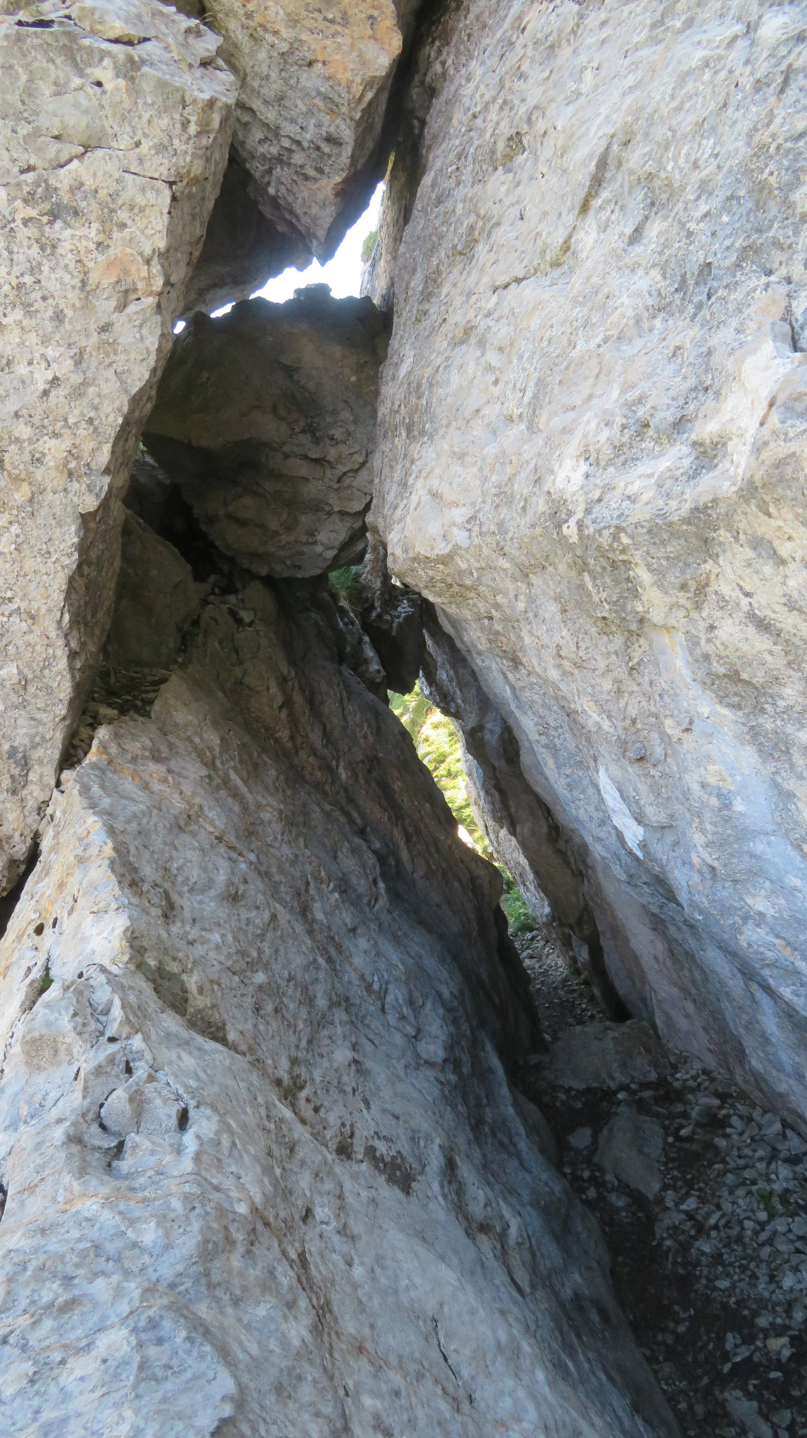 * Le seul passage "exposé" se situe sur quelques dizaines de mètres dans le secteur humide et gras du pas de la Bide : bien que "facile" et bien équipé (chaines) l'exposition est présente : prévoir une corde de randonnée pour personnes sujettes au vertige ou enfants ; Risque de chute de pierres également sur ce passage