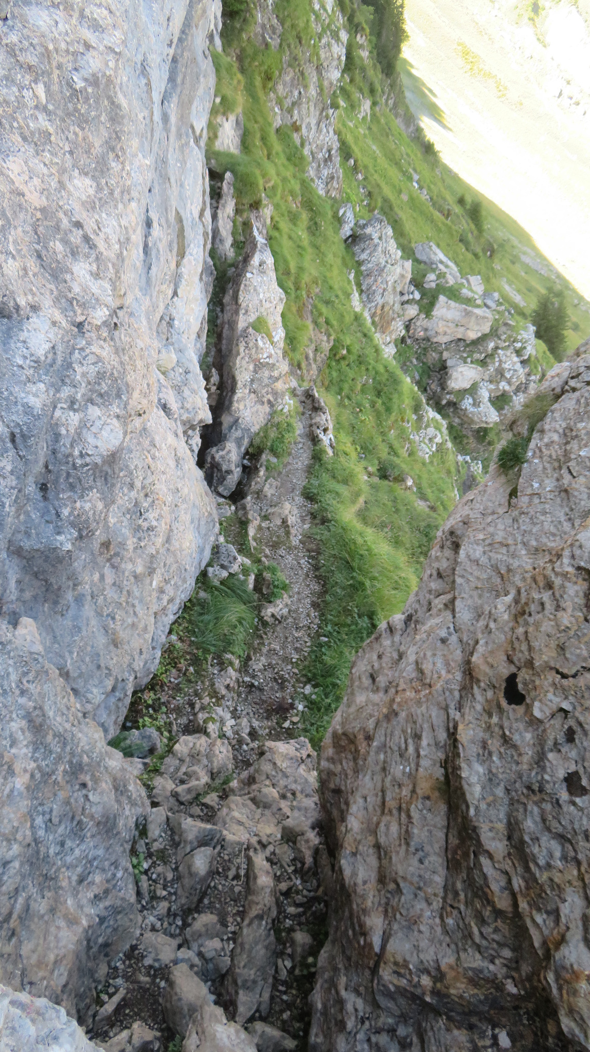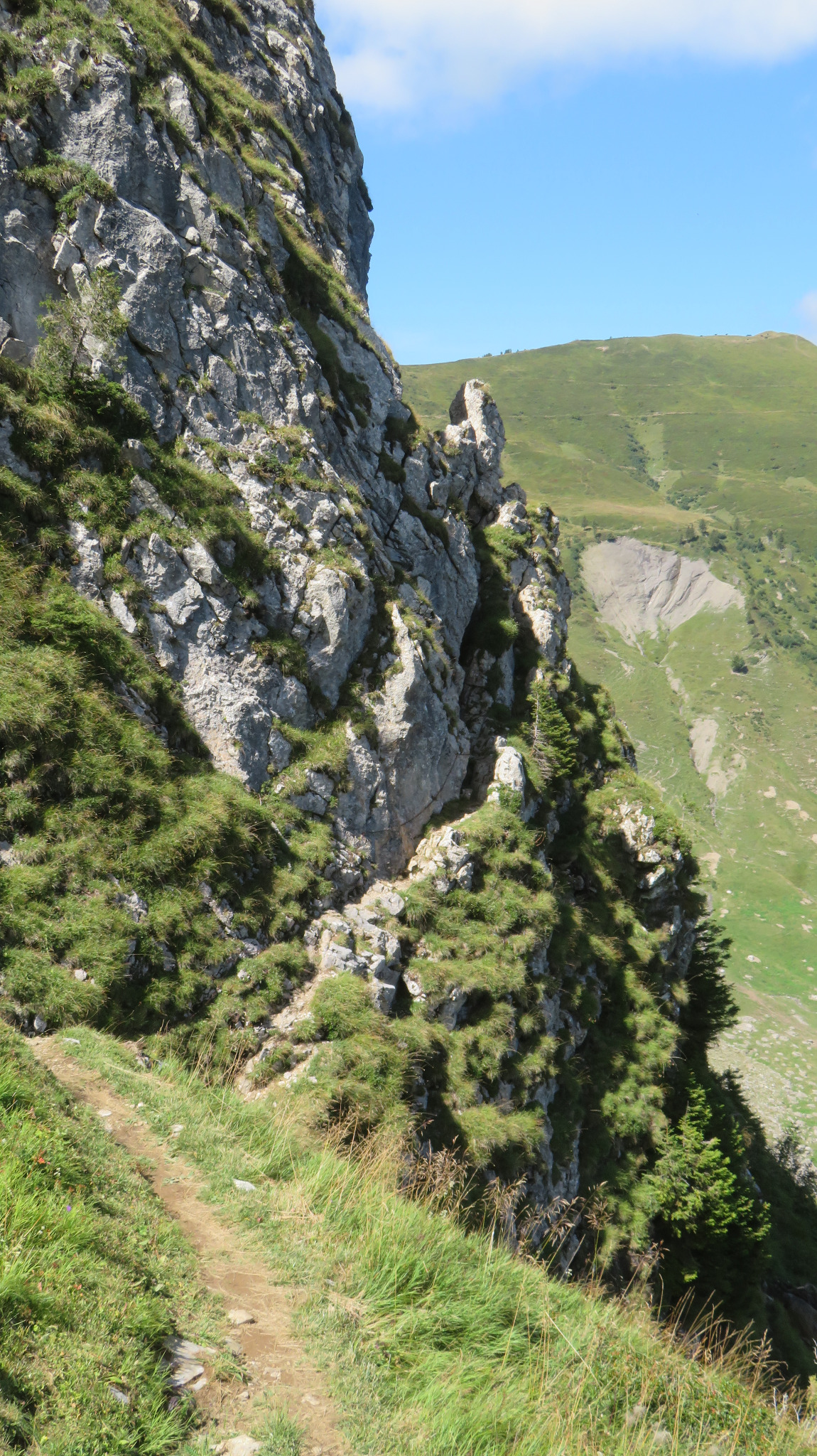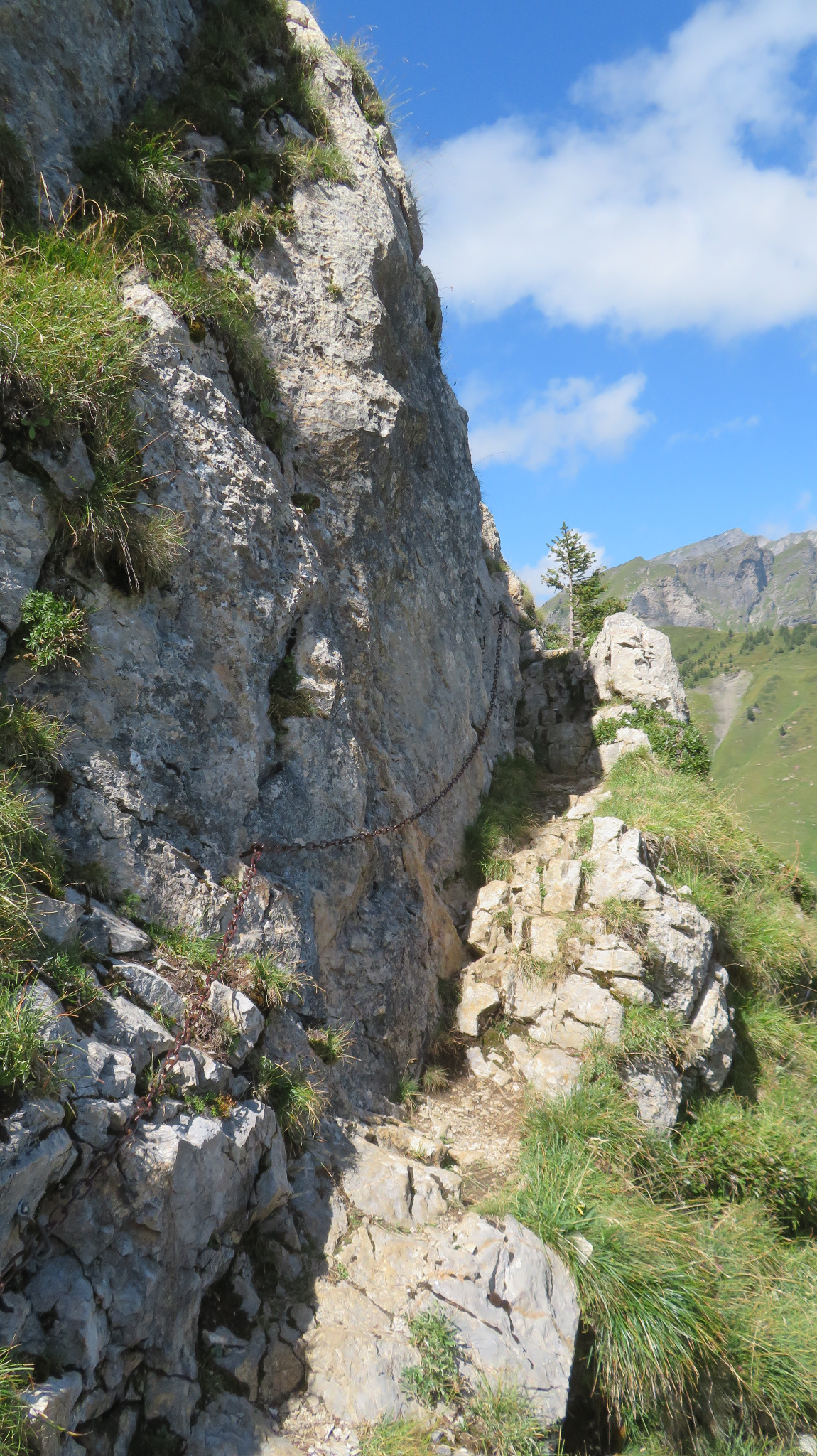 En amont du Pas, encore une traversée horizontale chainée et exposée, mais chemin assez large.