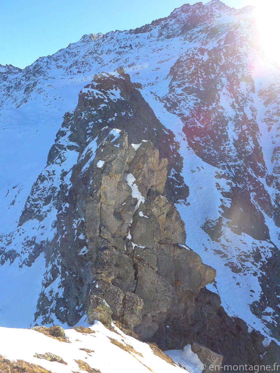 Remonter après le Passage de Tigneux et suivre des portions d'arêtes horizontales. Grimper la dernière portion de mixte pour monter au Pic de la Petite Valloire.