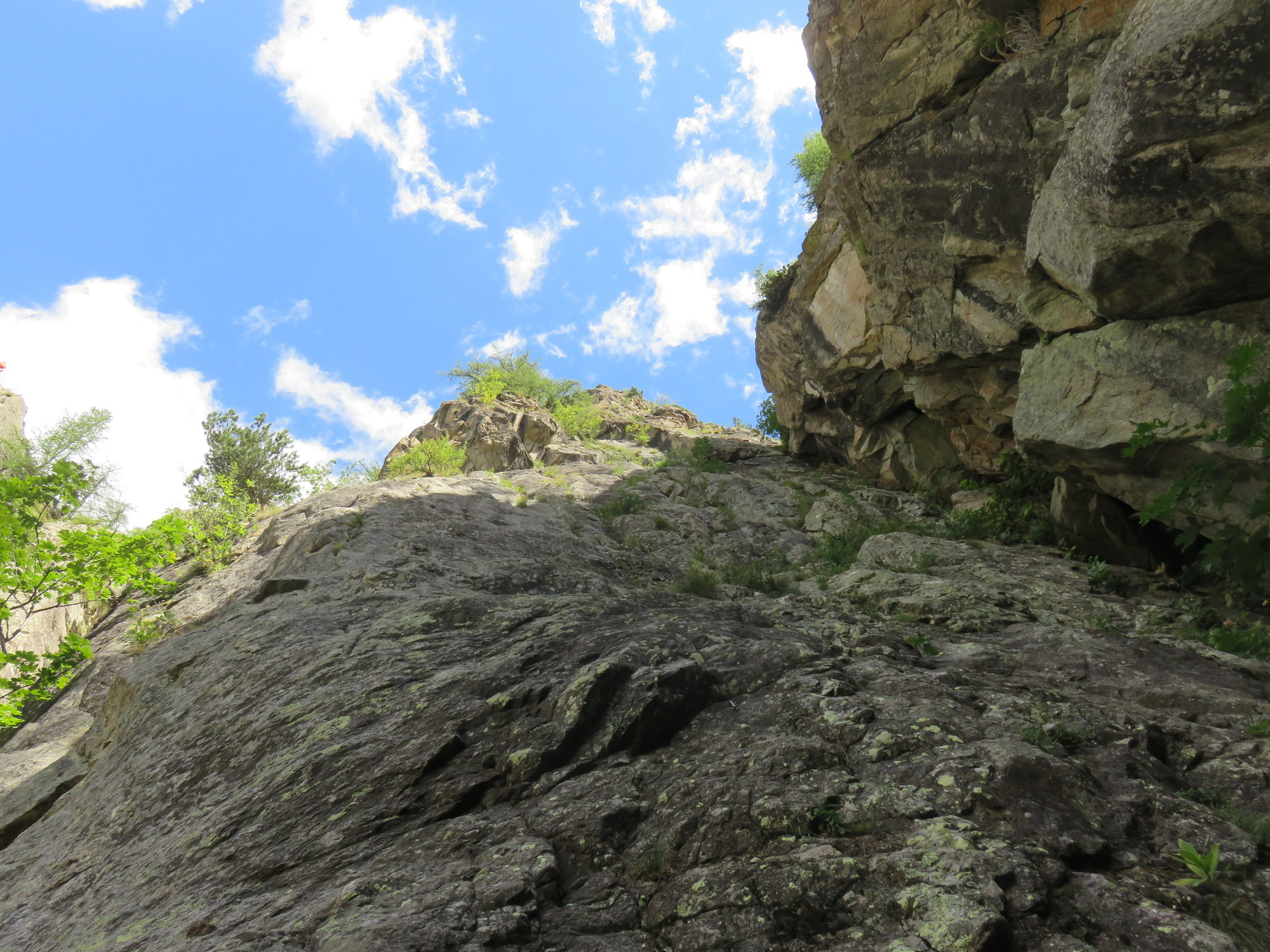 Le sentier amène au pied d'un premier éperon qui comporte la quasi totalité des voies du secteur Alcool à l'exception de Picon Bière et de Morilles dans la Brume.