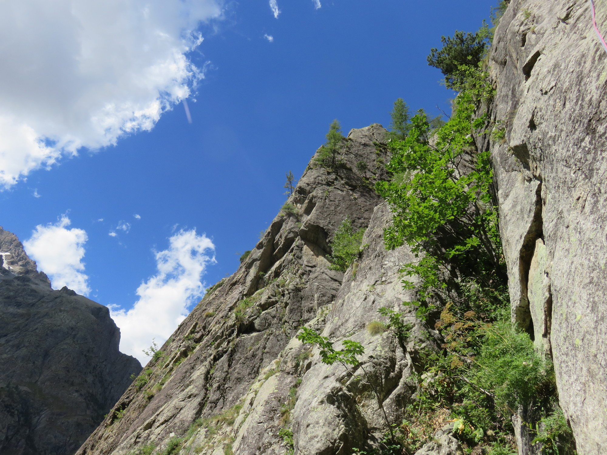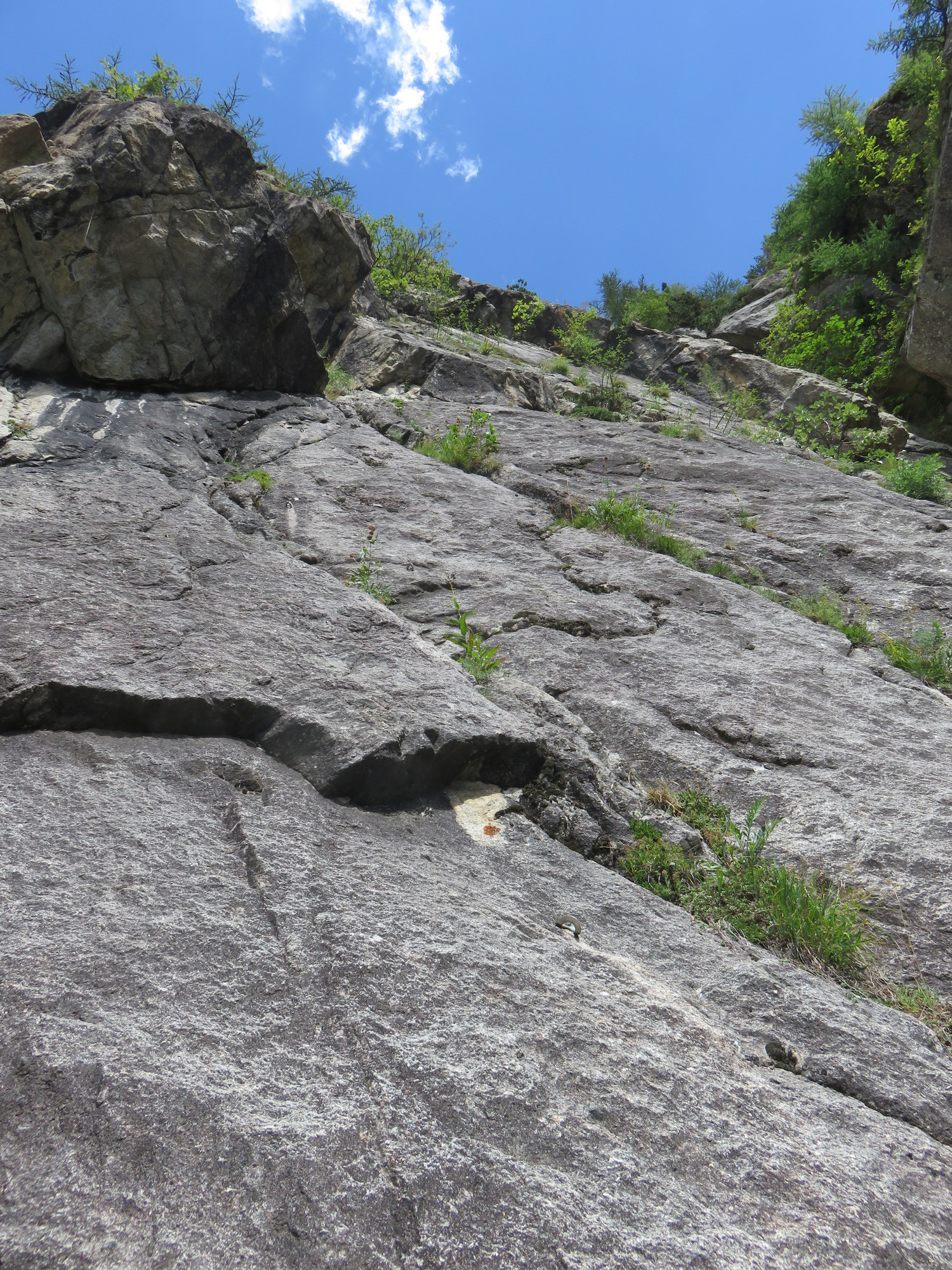 En août 2020 la voie est extrêmement sale: terre et aiguilles de pin sur les prises, écailles divers non nettoyées.