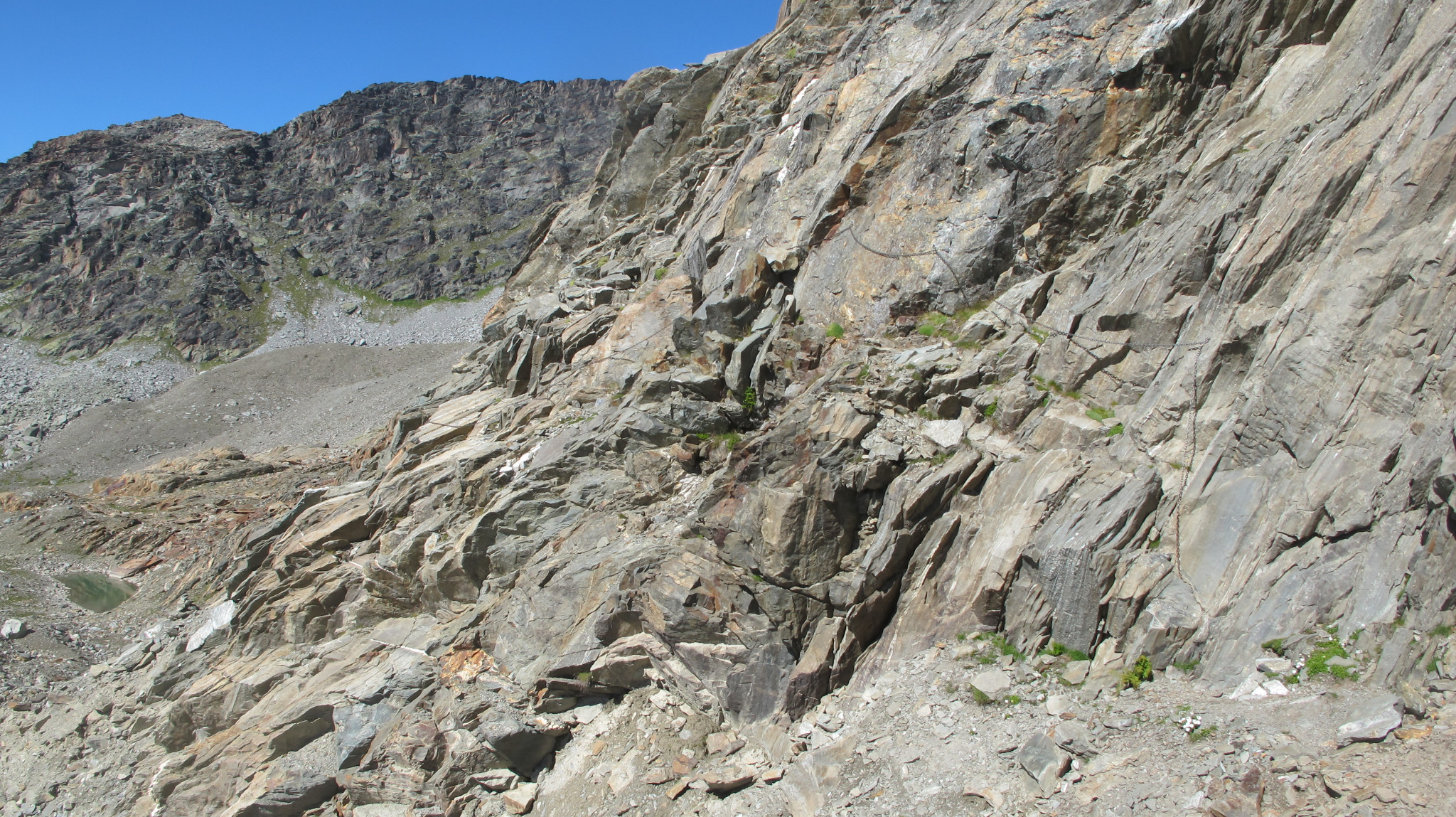 - Cette ascension du col de Planaval se déroule dans une ambiance très alpine, dominée par les parois menaçantes de la Pointe Chenal en rive gauche (probable risque de chutes de pierres). La descente côté Deffeyes n'est pas du tout du même niveau, bien que comportant deux passages rocheux équipés.